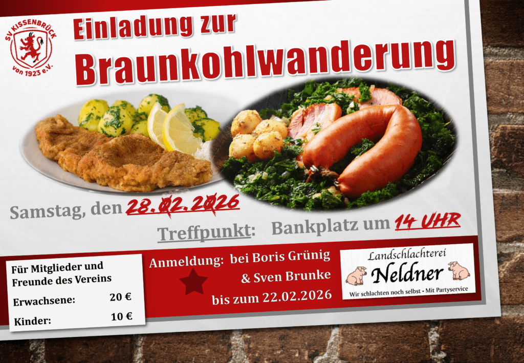 Am 28.02.2026 ist es wieder soweit! Der SVK lädt ein zur traditionellen Braunkohlwanderung. Also schnürt die Stiefel und seid dabei. Treffpunkt: 14 Uhr Bankplatz Anmeldungen: Bitte bis zum 22.02.2026 an […]